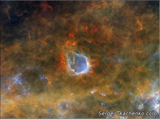 Туманность RCW 120, расстояние от Земли — 4300 световых лет. Credit: ESA/Herschel/PACS