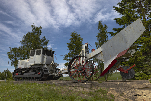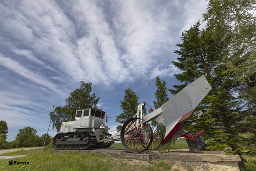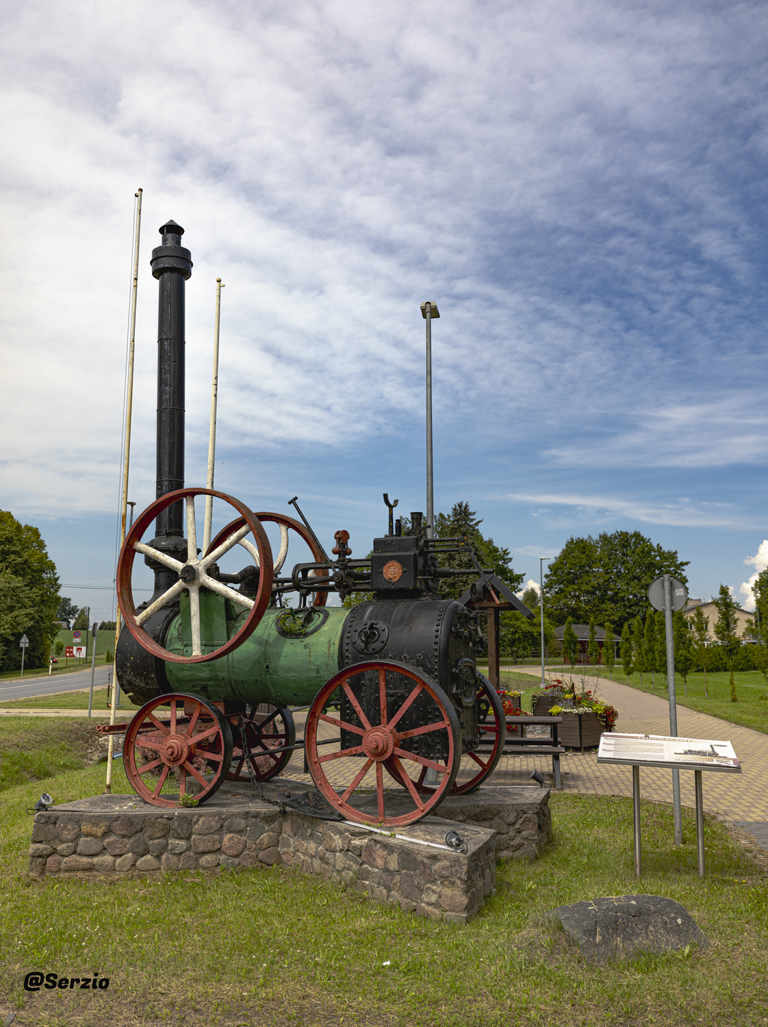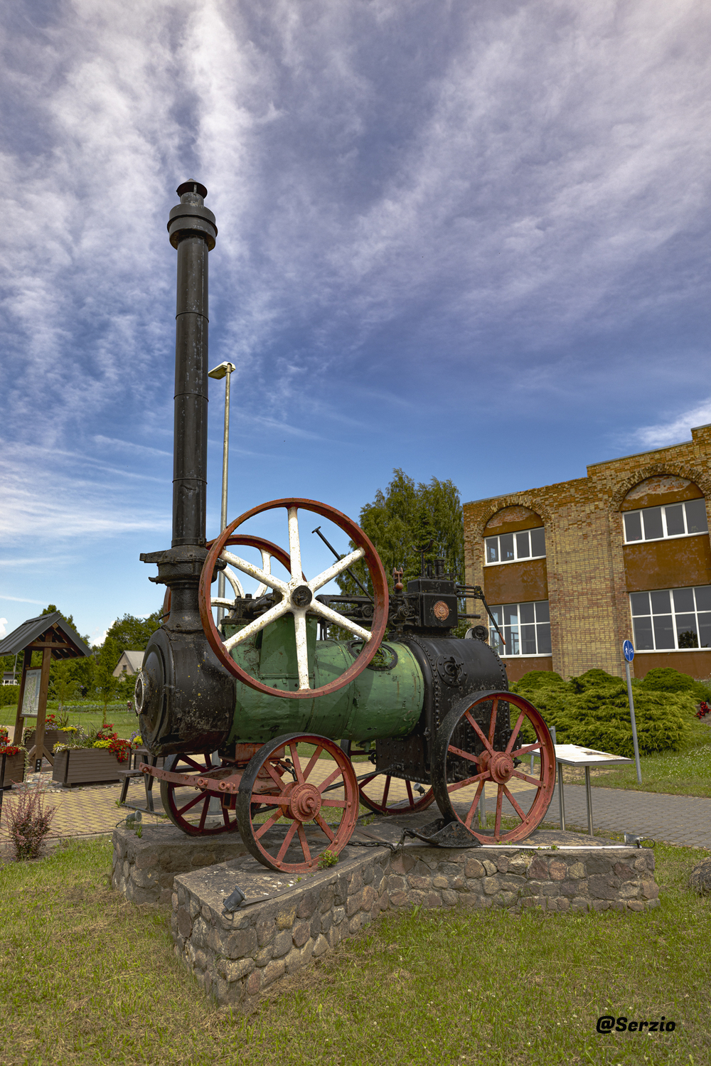 Индустриальное наследие Салдусского края. Проезжал мимо и сделал фото пару объектов. В другой раз постараюсь сфотографировать их всех. Industrial heritage of the Saldus region. I passed by and took a photo of a couple of objects. Next time I'll try to photograph them all. Первый объект находится -Druva, Saldus pagasts. Паровые локомобили были предназначены для работы молотилок. Локомобили с паровым двигателем в конце 19-го и начале 20-го века заменили лошадиные молотилки. Их топили дровами, и их сила была в водяном паре. Для работы с различными зерновыми культурами требовалось различное давление пара: 7-8 атмосфер. Локомобили были с двух и четырёхтактными двигателями; на одном обороте вращающегося коленчатого вала было два рабочих хода, пар давил на поршень. На полпути к поршню паровой делитель выпускал пар в трубу. Дальнейшее вращение обеспечил маховик, вес которого составляет около 200 килограммов. Во время молотьбы молотилки вместе с локомобилями перевозили из одного двора на другой, приглашая на толоку и соседей. С общими накрытыми столами и песнями молотьба превратилась в важное событие жизни. В колхоз «Druva» локомобиль доставлен в 1980 году. Он привезен из села Вариеба Ванской волости Тукумского района и установлен у механических мастерских колхоза «Druva» . Уже тогда этот локомобиль определен как туристический объект и использован в популяризации традиций труда. Локомобиль запускали, когда люди приступали к уборке урожая, и комбайны колхоза «Druva» отправлялись на поля. 10 сентября 2016 года у этого локомобиля был поднят флаг Дней культурного наследия Европы. Второй объект находится -Lutriņu pagasts, Saldus novads. Гусеничный трактор изготовлен после Второй мировой войны. Изначально он был произведен на базе танков. Трактор предназначен для проведения различных земельных и сельскохозяйственных работ. Конкретный экземпляр оснащен канавокопательным устройством. В 50-е годы 20 века крестьянским хозяйствам начали предлагать канавокопательные плуги KM-800, ЛKA-2. Для работы с плугом требовалось вплоть до трех больших тракторов C-80 (Сталинец), T-100. Изначально размещение канав определяли бригады канавочных плугов и бригадиры коллективных хозяйств, впоследствии были созданы проекты. С 1951 по 1965 год канавокопательными плугами в Латвии осушили 377 270 га сельскохозяйственных земель. В 1967 году появилась современная техника – многоковшовые экскаваторы и началось время строительства дренажей.